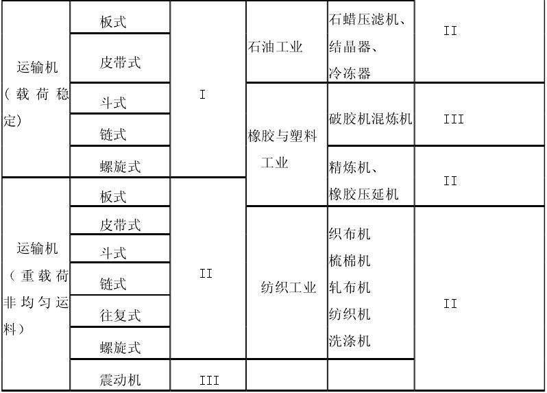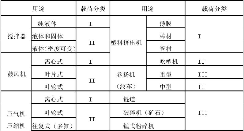泰興減速機(jī)在不同的使用環(huán)境和應(yīng)用條件下所承載負(fù)荷明顯不同,表 5-1 減速機(jī)的載荷分類表是減速機(jī)在實(shí)際應(yīng)用中匯總及相應(yīng)的載荷等級(jí)確認(rèn),有利于客戶的選型、企業(yè)的設(shè)計(jì)生產(chǎn),已達(dá)到減速機(jī)與應(yīng)用環(huán)境的合理配置。