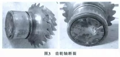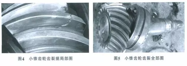 實例 2:小錐齒輪打齒,開裂,發現及時未造成其它零部件損壞見圖 4、圖 5。
