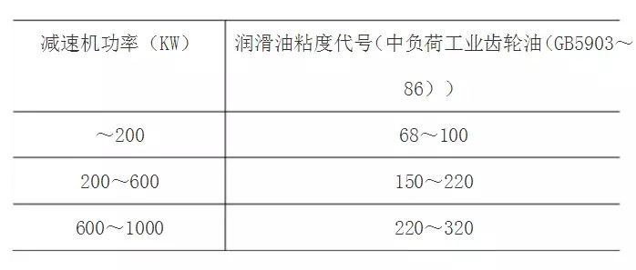 實踐證明使用機械油的泰興減速機要比使用中負荷工業(yè)齒輪油減速機的壽命縮短1~2倍左右,另外使用淘汰的低檔油還是一種資源浪費,由此可見,減速機的選油就顯的十分重要,按照目前的情況,應統(tǒng)一用GB5903—86所規(guī)定的硫磷型中負荷工業(yè)齒輪油為好,該油基本上與國際馳名的優(yōu)質齒輪油相同,在抗壓、抗乳化、粘溫特性、抗氧化等性能方面完全符合冶金企業(yè)設備減速機的使用需要,對于低速重載的減速機有條件的企業(yè)還可以適當?shù)靥砑右恍┛鼓瑢τ跍p速機所使用的潤滑油品種及粘度(一般應按照制造廠提供的為準),通常是根據(jù)齒面接觸應力及齒輪節(jié)圓圓周速度等計算出來的,也可根據(jù)減速機功率按照該表參考執(zhí)行: