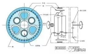 RV減速器是在擺線針輪傳動基礎上發展起來的,具有二級減速和中心圓盤支承結構。自1986年投入市場以來,因其傳動比大、傳動效率高、運動精度高、回差小、低振動、剛性大和高可靠性等優點,成為機器人的“御用”減速器。